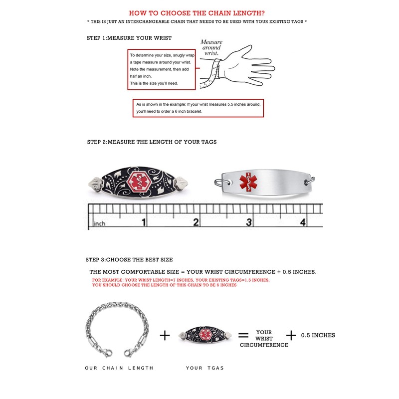 - 23/64 inch width Cable chain bracelet,13mm lobster clasp on each side,It can match all interchangeable medical id tags