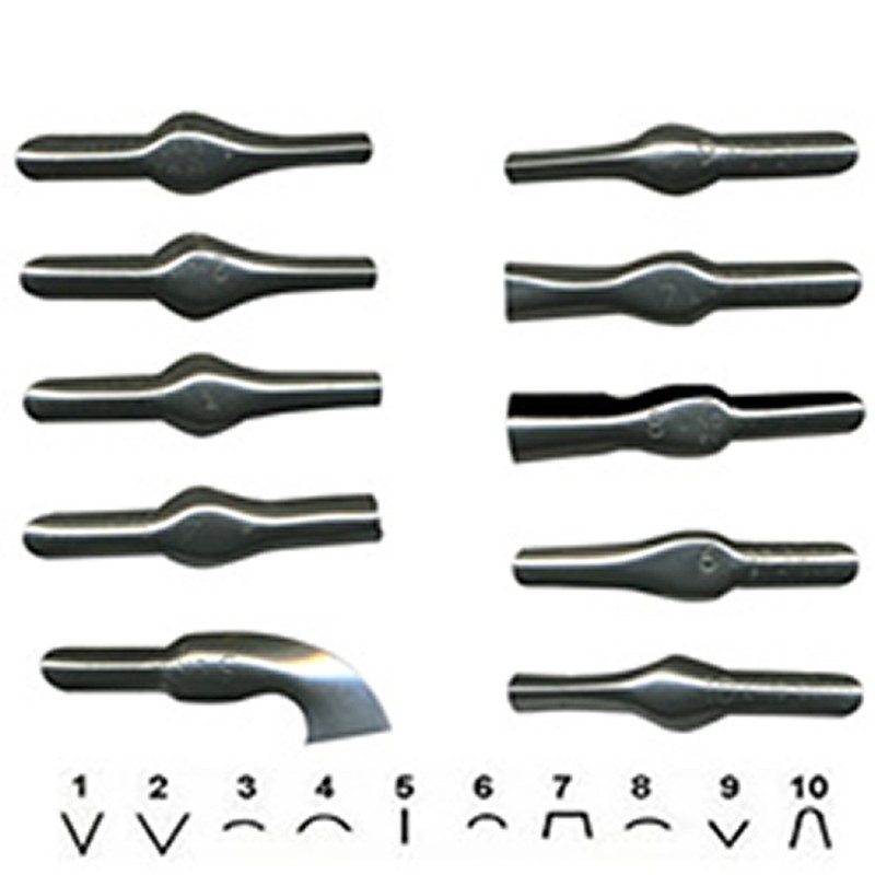 Lino Cutter Tools for Art Printing Pack of 25 Linoleum Cutting Blades Style 1-10 by BCreative®