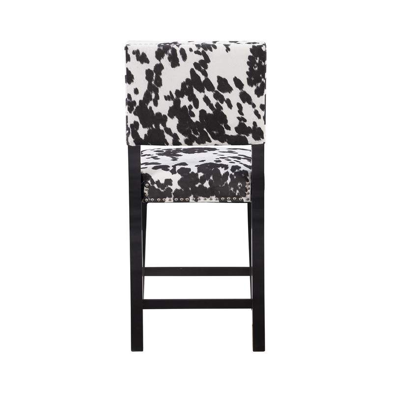 Linon Cole Black Wood 24" Seat Height Counter Stool with Black and White Cow Print Upholstered Seat and Back