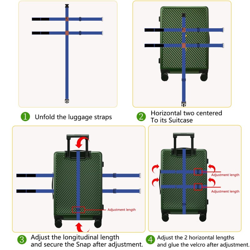 - Strong adaptability: The three straps of Luggage Straps are adjustable in length, making it suitable for various models and sizes of luggage. It can fit 20 "-34" luggage, which basically covers all luggage sizes on the market. Having this Luggage Straps can make all your luggage more sturdy