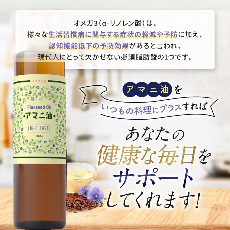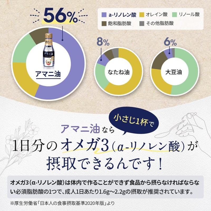 • Gentle Flavor: It has a low odor and is unique to linseed, so it can be enjoyed by people of a wide range of ages, from seniors to children.