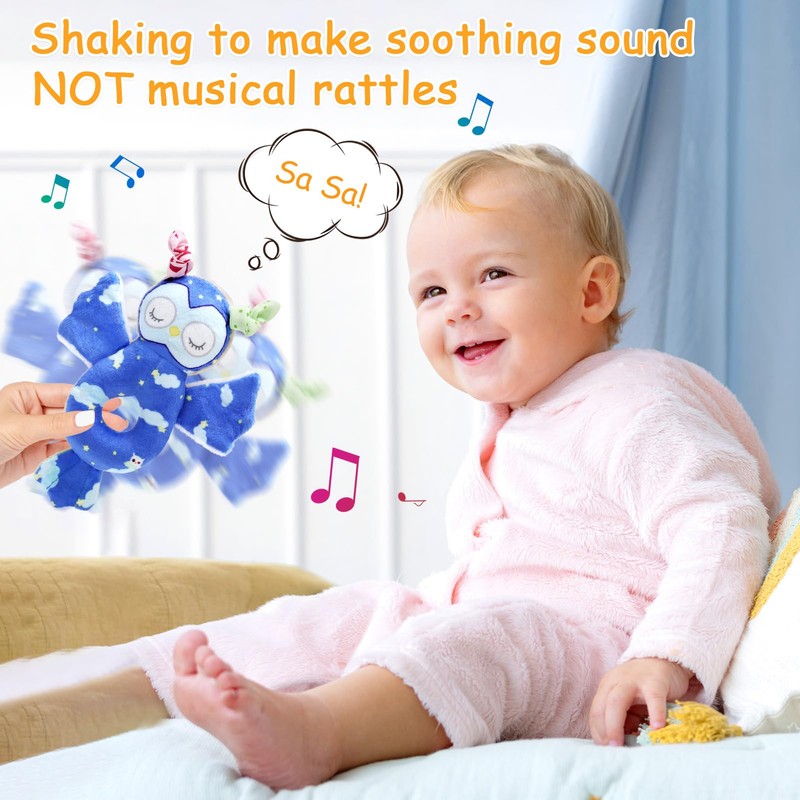 - INTELLIGENTE BILDUNG: Unsere Babyrasselspielzeuge können die Hand-Auge-Gehirn-Koordination Ihres Babys trainieren, und die Eulenform in verschiedenen Farben können die kognitiven Fähigkeiten Ihres Babys fördern. Die bunten Perlen im Inneren des Rasselspielzeugs machen beim Schütteln beruhigende Geräusche, ziehen die Aufmerksamkeit des Babys auf sich und stimulieren die Entwicklung des Gehörs des Babys