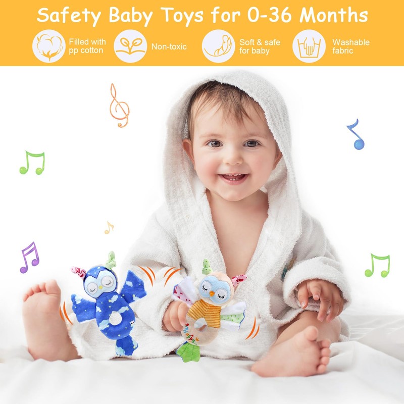 - BESTES GESCHENK FÜR BABYS: Diese Babyrasseln für 0–6 Monate sind eine großartige Wahl als Spielzeuggeschenk für Neugeborene. Der beruhigende Klang der Glocke und die doppelseitige süße Cartoon-Eulenform werden die Aufmerksamkeit Ihres Babys erregen und es schnell beruhigen. Als Geschenk für Neugeborene/Geburtstagsgeschenk/Weihnachtsgeschenk/Feriengeschenk/Taufgeschenk. Baby- und Kleinkindspielzeuge sind für Babys von 0 bis 12 Monaten geeignet