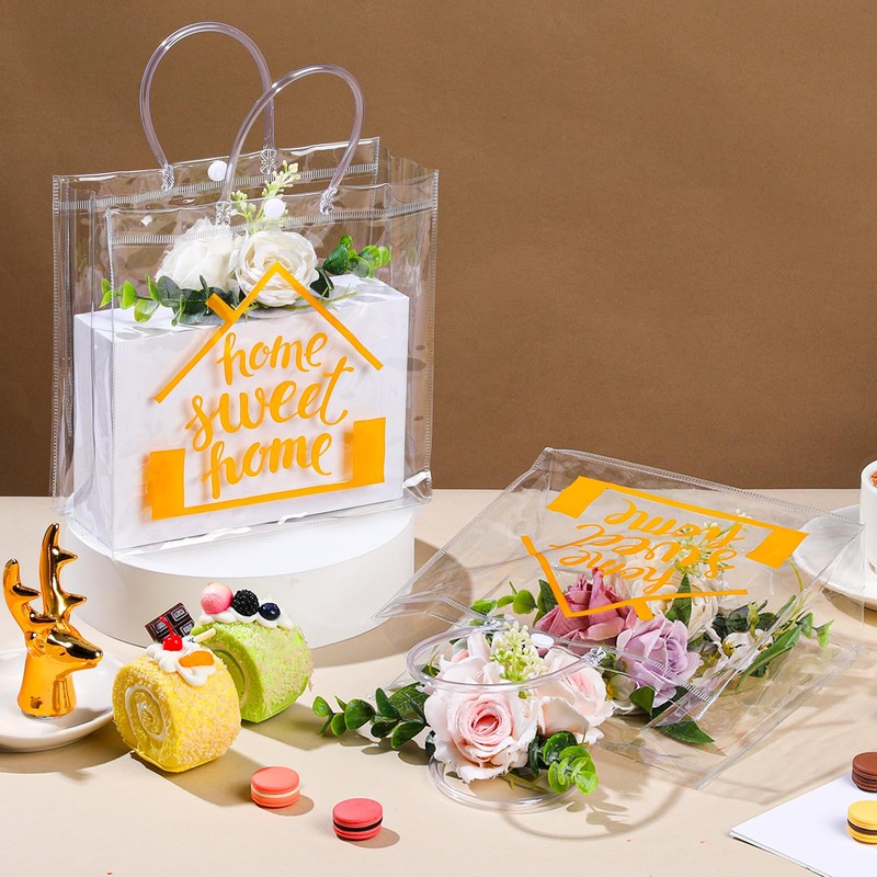 - Charming & Practical Design: These clear plastic tote bags boast a delightful "Home Sweet Home" motif with a charming house illustration. Measuring 7.9 x 7.9 x 3.1 inches (20 x 20 x 8 cm), they're perfectly sized to hold small housewarming gifts, treats, candles, or decorations, adding a special touch to your presents.