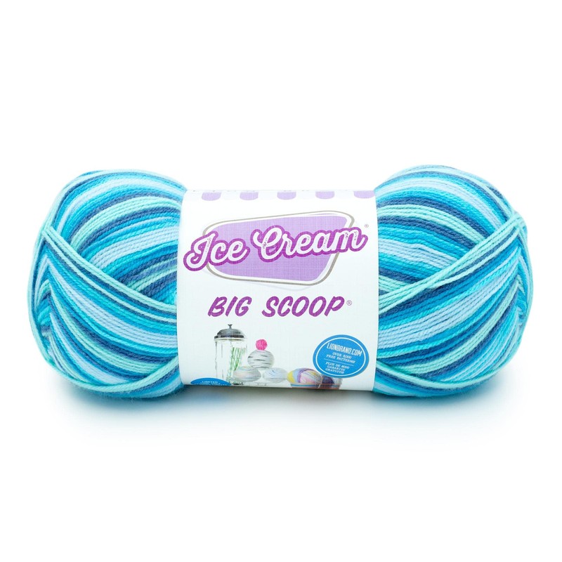 - Ice Cream Big Scoop is the same soft, easy-care yarn as Ice Cream, with even more yardage – one ball is enough to make a baby set or a whole blanket.