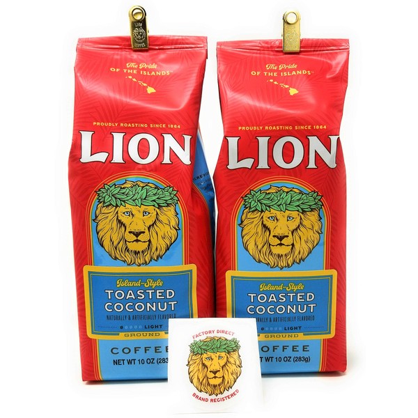 Lion Coffee Toasted Coconut 10 oz grind (2 Pack)