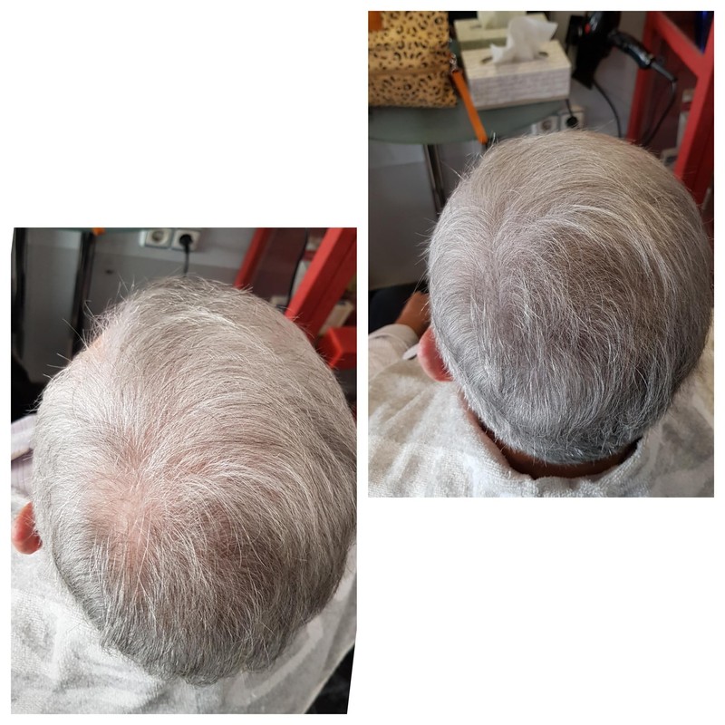 - - Die graue Farbe erscheint, wenn wir eine Mischung aus zwei Farben haben, weißer Graukopf und der ursprünglichen Grundfarbe. Wir verwenden die dunkelgraue Farbe für Haare, bei denen graues Haar vorherrscht und wir unsere Haarfarbe mögen, wodurch ein sehr natürliches Finish entsteht. Im Gegenteil, wenn wir vor dem Grauen fliehen, wäre dies nicht die richtige Farbe, weil wir sie intensivieren werden (dieser Fall ist üblich, besonders bei Männern, die noch nicht mehr grauer sind, sollten wir die ursprüngliche Grundfarbe verwenden).