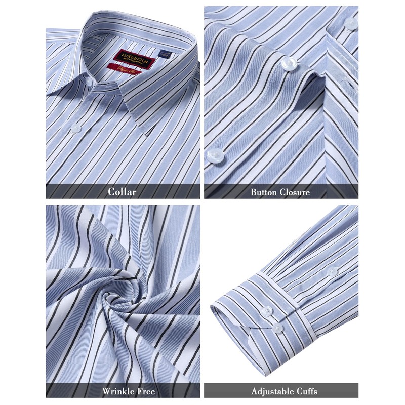 - Design: These mens button up shirts long sleeve exhibit button down collars, long sleeves with adjustable cuffs, and stripe pattern prints. Available in diverse patterns with classic regular fit, these mens dress shirts long sleeve accommodate both Regular and Big & Tall dimensions,meticulously designed as big and tall button down shirts for men.