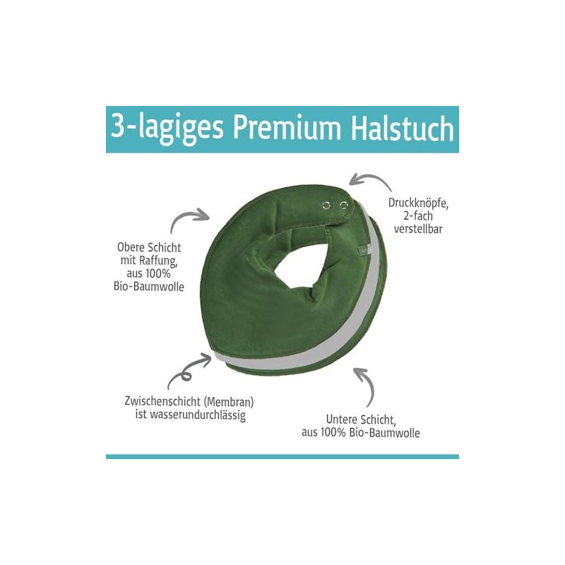 - Neckerchief for babies and toddlers of approx. 4 months to 3 years (up to 28 cm neck circumference) with 2 press studs, adjustable size. Stitched gathered on the sides