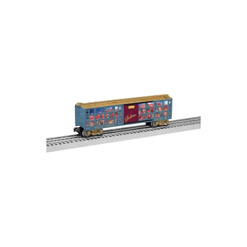- PRODUCT: Lionel The Polar Express Present O Gauge Model Train Transport Car includes present images on window inserts, sports “Believe” and “Polar Express” emblems.