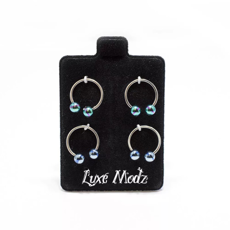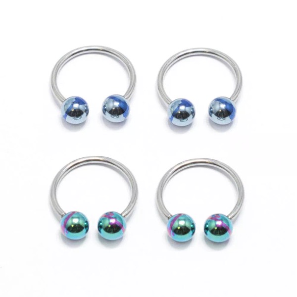 LionGothic Horseshoe Ring Circular Barbell 4 Pack 18G Anodized Blue & Green Stripe Balls