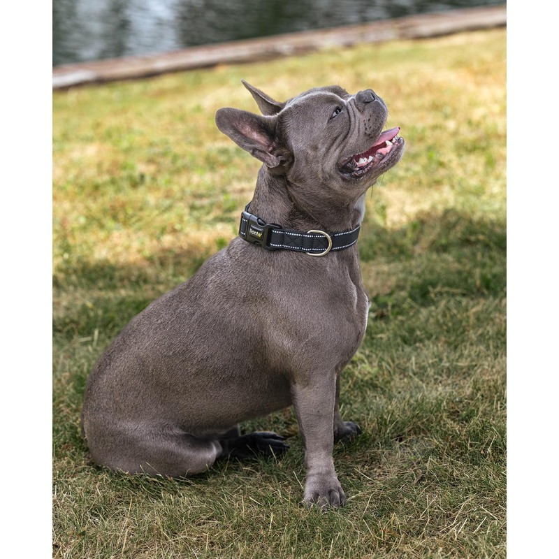 lionto Personalised Dog Collar Made of Durable Nylon, Size S, Reflective Collar for Dogs with Name or Phone Number, Metal Ring & Continuous Slider, Black (Customisable Print)