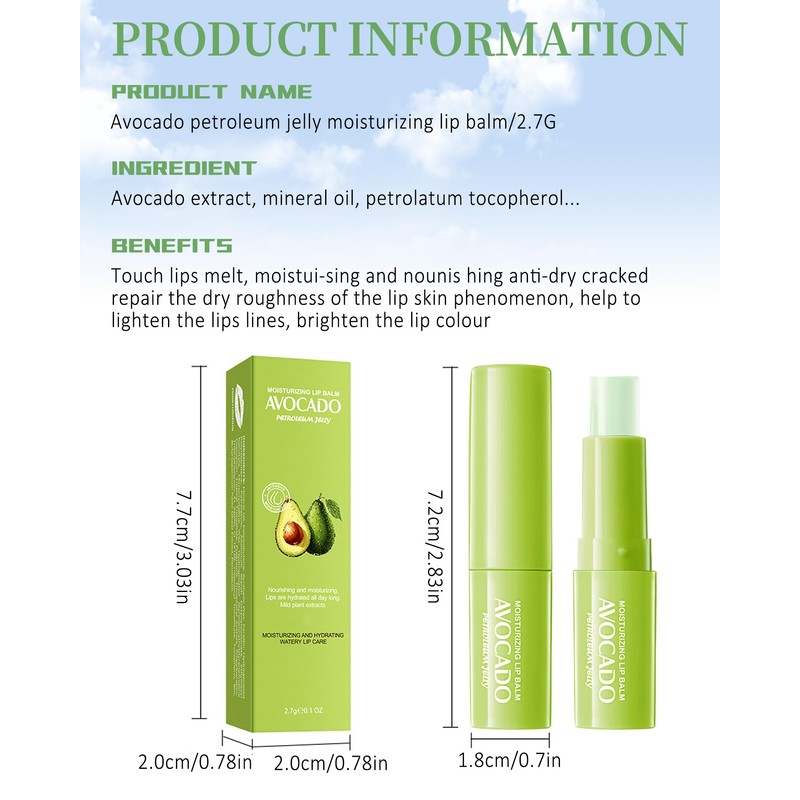 - Lip Balm Set - You will receive 8 avocado lip balms with soft and silky texture. Smooth and delicate when applying, no sticky feeling, long-lasting moisturizing and nourishing lips, repairing and fading lip lines, taking care of the lip area.