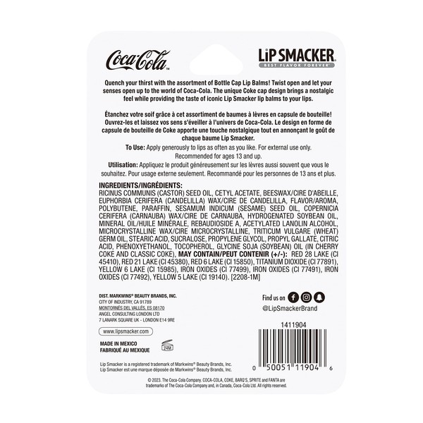 - Flavored as your favorite Coca-Cola sodas, each lip balm provides moisturizing nutrients that glide on your lips smoothly with every application.