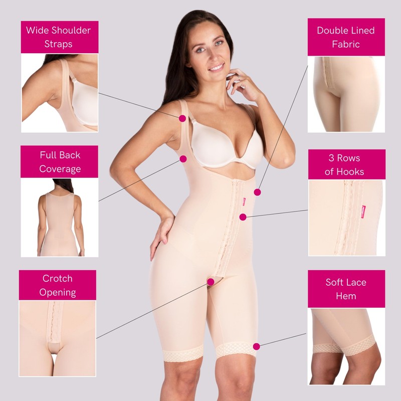 - Shapewear for Everyday Use: Popular as a fajas colombianas and full body shaper for women, it is equipped with a front closure of three adjustable hook rows for customizable compression. The hygienic opening in the crotch provides all-day comfort and easy bathroom use, and you can wear your own underwear over it. It works well as postpartum shapewear, providing the support new mothers need, especially after a C-section.