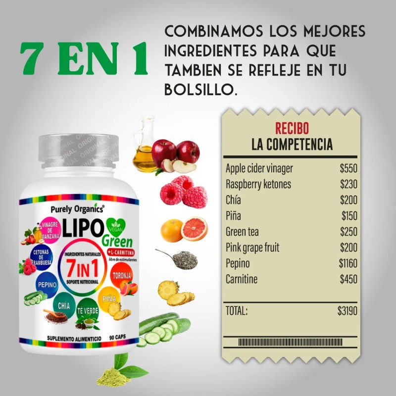 LipoGreen 7 In 1 Orgánico 100% 90 Cápsulas Purely Organics