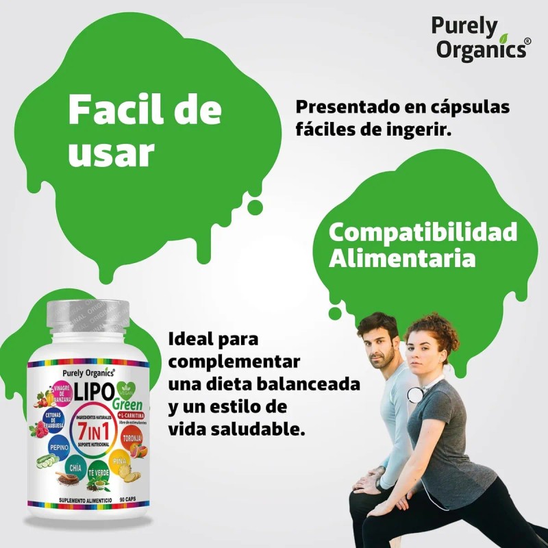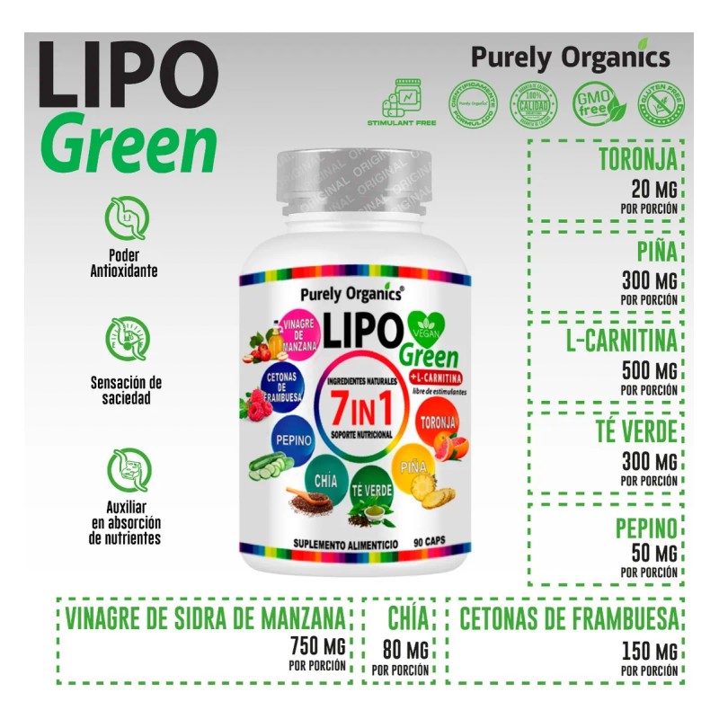 LipoGreen 7 In 1 Orgánico 100% 90 Cápsulas Purely Organics