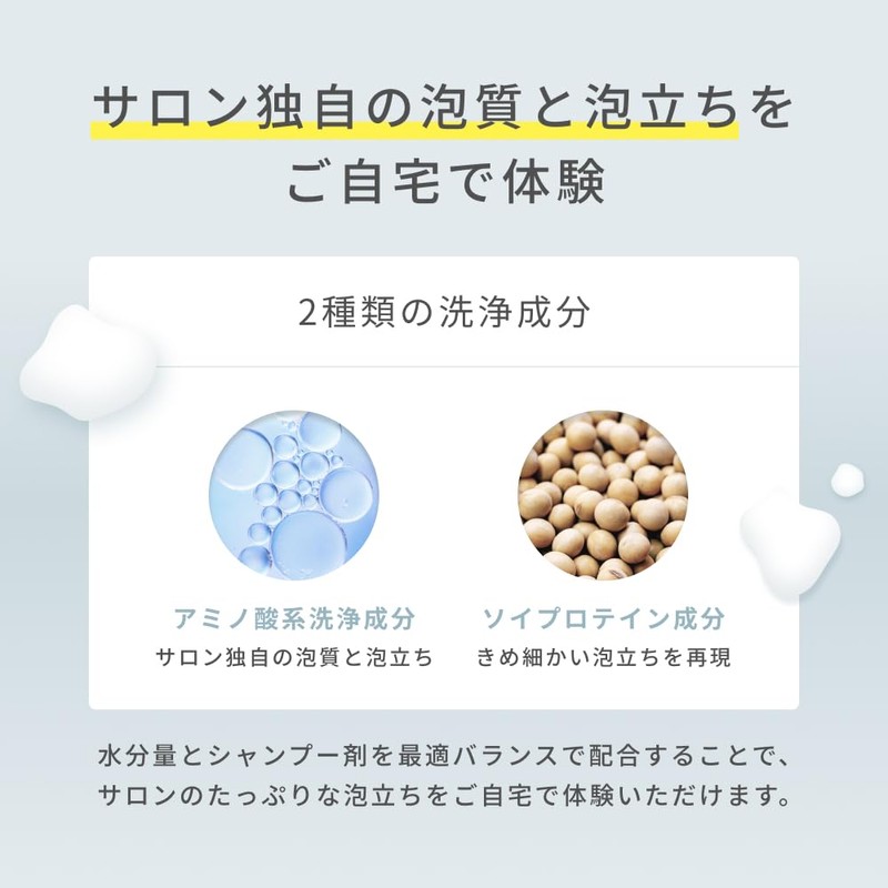 - 豊かな泡立ちで、 やさしく洗い上げ 汚れやベタつきを すっきり落とします。【シャンプー】