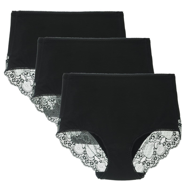 LIQQY Lace Underwear for Women High Waisted Brief Comfort Cotton Full Coverage No Roll Panties Multipack (Small, Black)
