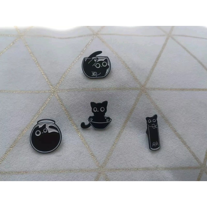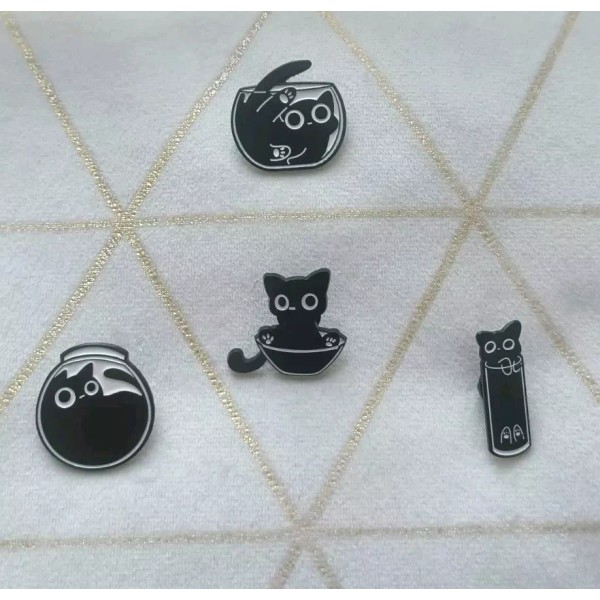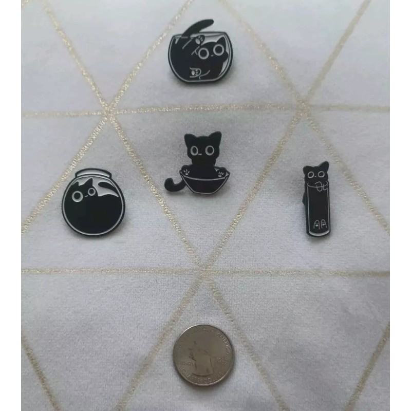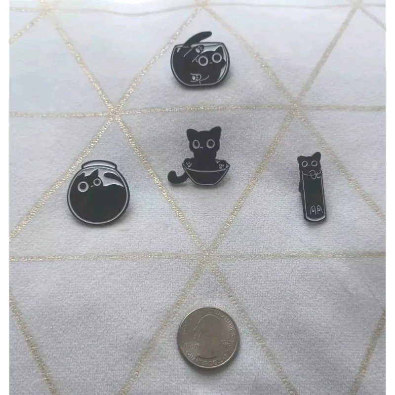 "Liquid Black Cat Set Nr. 1" x4 Pin Set (Artistic Black/White) "Brand New ".