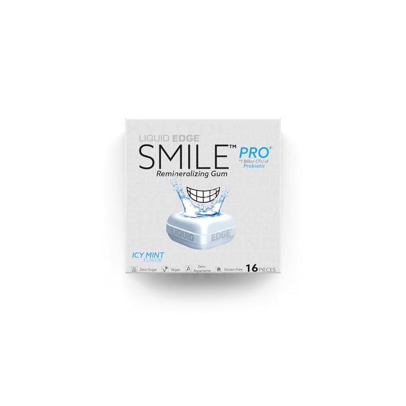 Liquid Edge SMILE Pro+ Remineralizing Probiotic Gum, Icy Mint, Zero Sugar, Vegan, 16 Pieces