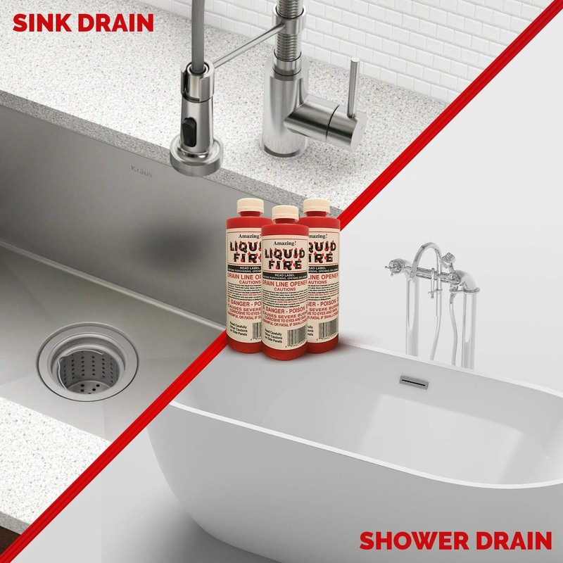 - As you Pour Liquid Fire into clogged or slow running drain, it reacts instantly creating heat