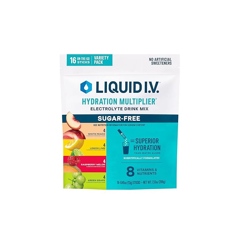 Liquid I.V.® Hydration Multiplier Sugar-Free - Raspberry Melon, Lemon Lime, White Peach, Green Grape | Electrolyte Powder Drink Mix | 1 Pack (16 Servings)