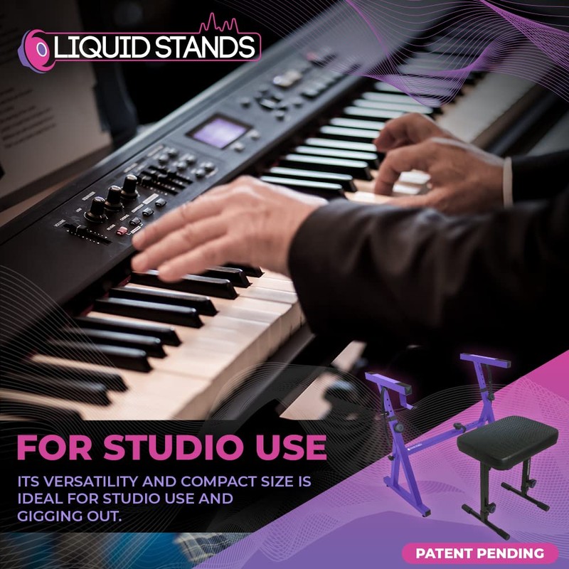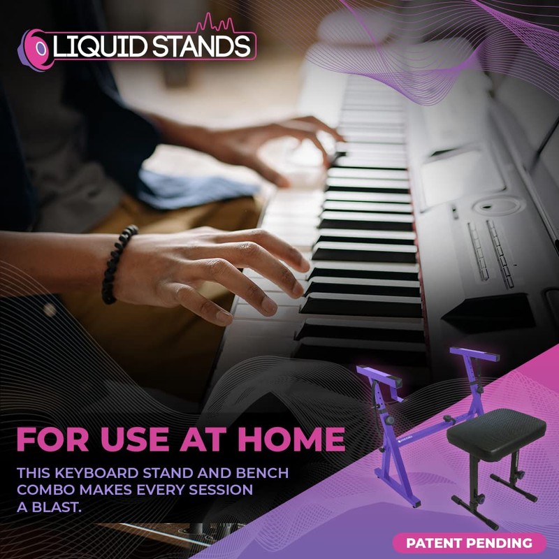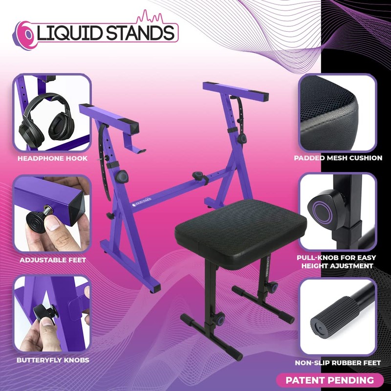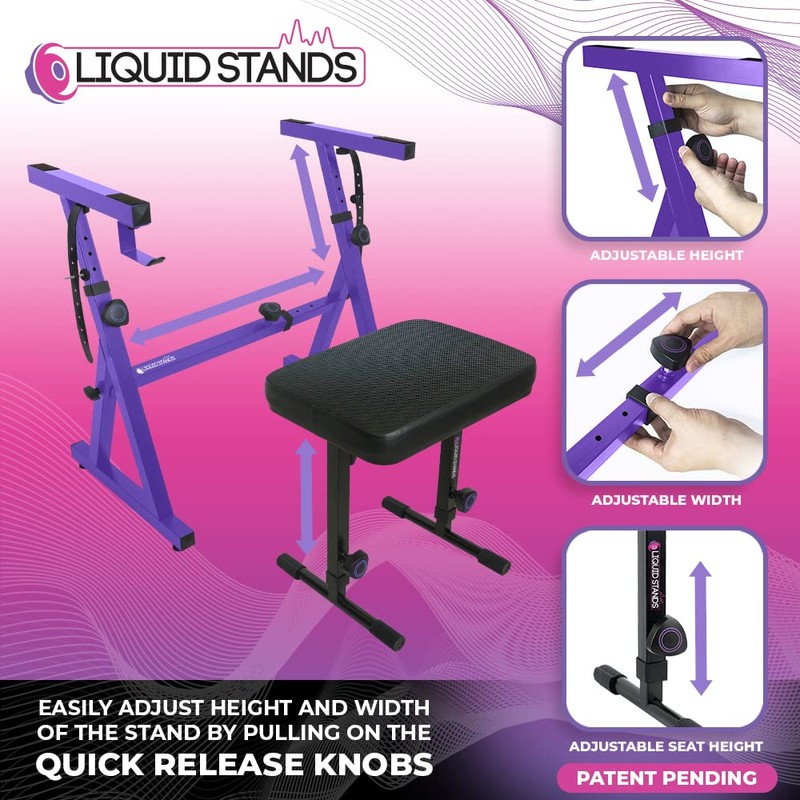 Liquid Stands Keyboard Stand and Bench Set - Portable Heavy Duty Digital Piano Stand for 54-88 Key Electric Pianos & Adjustable Piano Bench, Chair, Stool - Keyboard Music Stand and Seat (Purple)