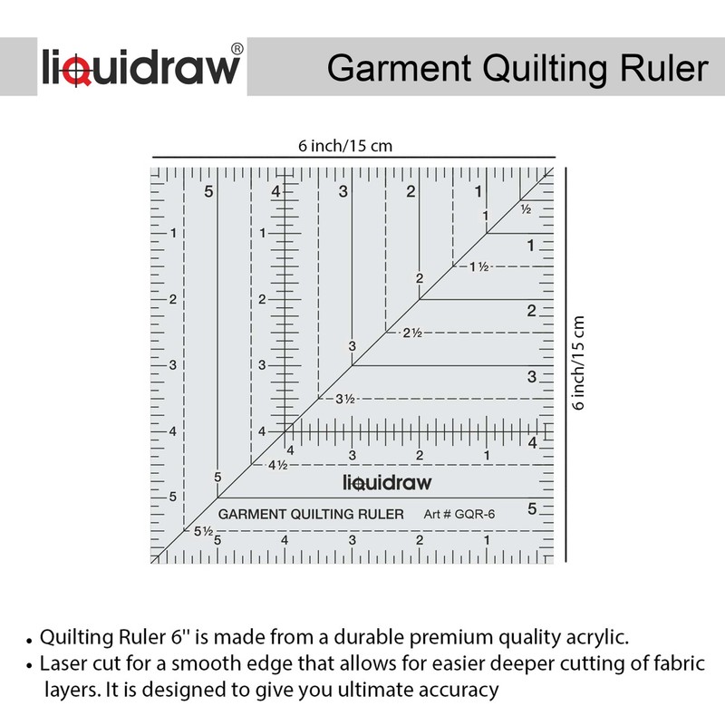 Liquidraw Square Quilting Ruler, Clear Acrylic Template, 6"