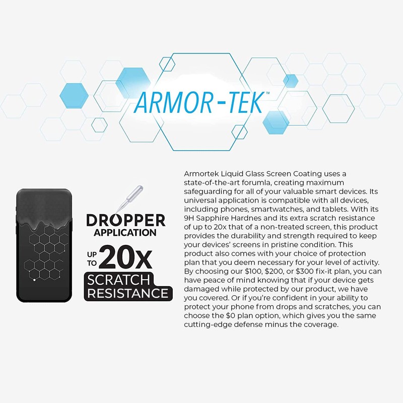 LIQUIPEL Armortek Liquid Glass Screen Protector - Universal Nano Liquid Screen Protector for Smartphones, Tablets, and Wearables - Increased Impact and Scratch Protection ($200 Protection Plan)