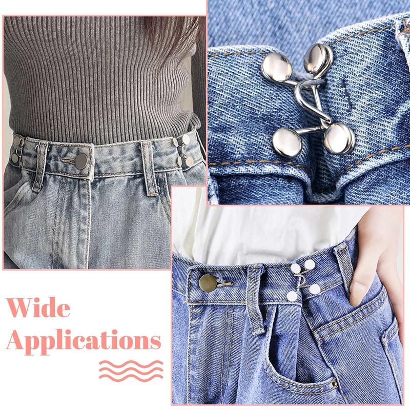 LiQunSweet 8 Sets Adjustable Waist Buckle Alloy Reusable Tightening Waist Pins Tightener Replacement Buttons for DIY Loose Jeans Skirts Pants Clothes No Sewing Clips