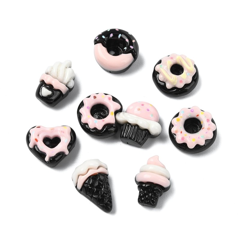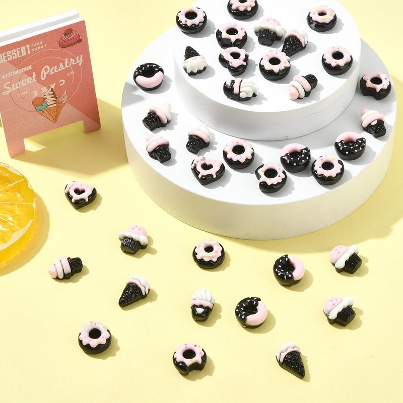 - Dessert-Themed Designs: Featuring adorable Pink Black Dessert Theme Resin Cabochons and Imitation Sweet Food Ice Cream Donut No Hole Beads, these loose-beads are perfect for adding a delightful touch to your craft projects