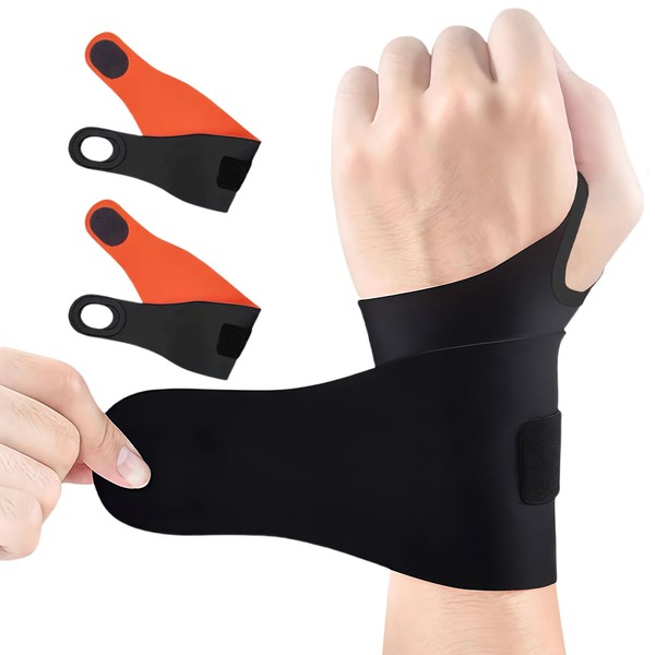 Liroyal 手首サポーター【2個入】親指サポーター リストサポート 固定サポーター 高弾性生地 マジックテープ 滑り止め 吸汗速乾 薄手 通気性 肌に親しむ 圧力調整 関節を保護 日常生活 スポーツ 仕事 筋トレ用 男女兼用 左右兼用(黒オレンジ)