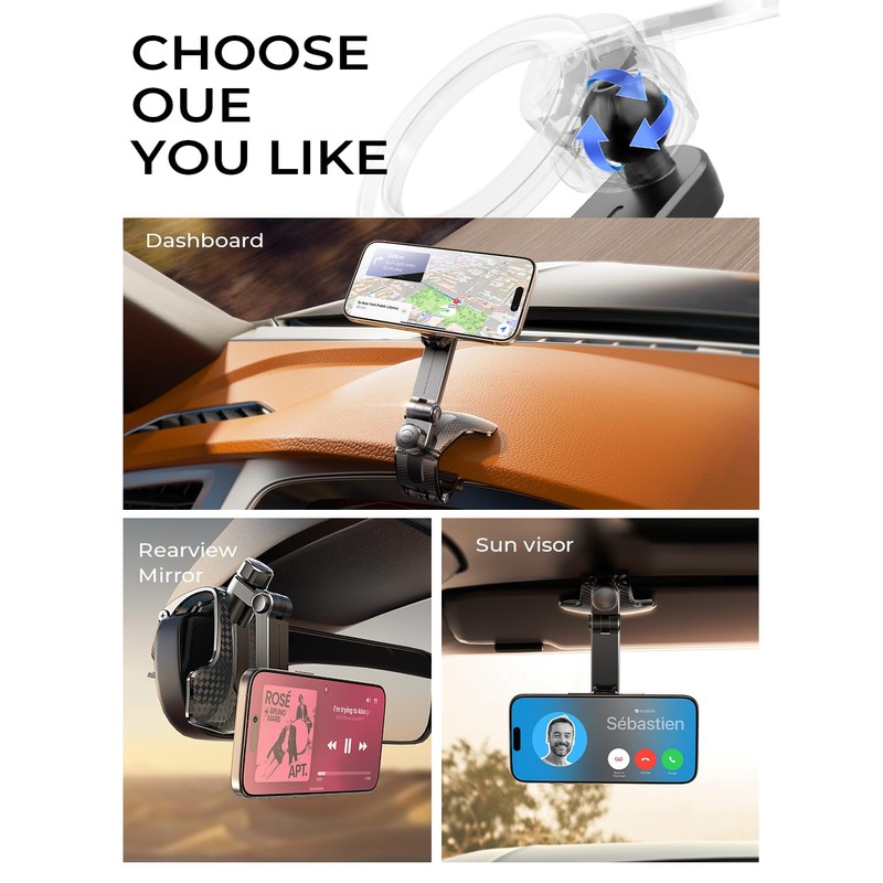 - The LISEN for MagSafe 360 Degree Car Phone Holder offers 360-degree rotation, allowing you to switch between horizontal and vertical views for optimal navigation and hands-free calls. Designed for safety, it ensures a clear view of your device, minimizing distractions while driving. This car phone holder enhances convenience by providing easy access to your phone without obstructing your line of sight. Perfect for GPS or calls, it's an essential accessory for anyone seeking both safety and practicality on the road.