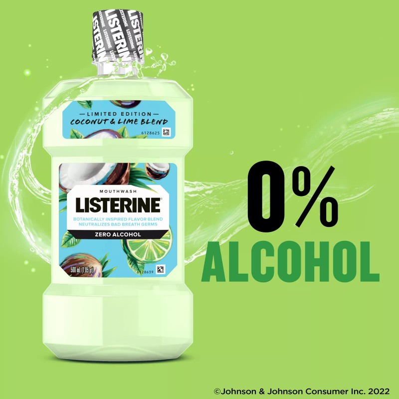 Listerine Zero Alcohol Mouthwash, Limited Edition Coconut Lime, 500 mL