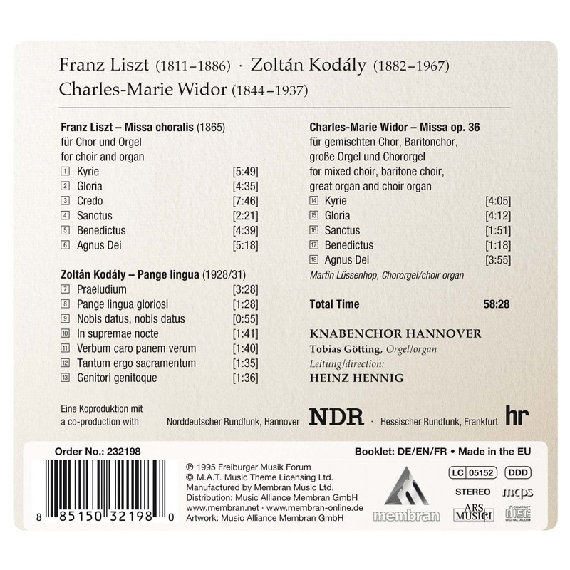 Liszt: Missa Choralis, Kodály: Pange Lingua, Widor: Missa Op. 36