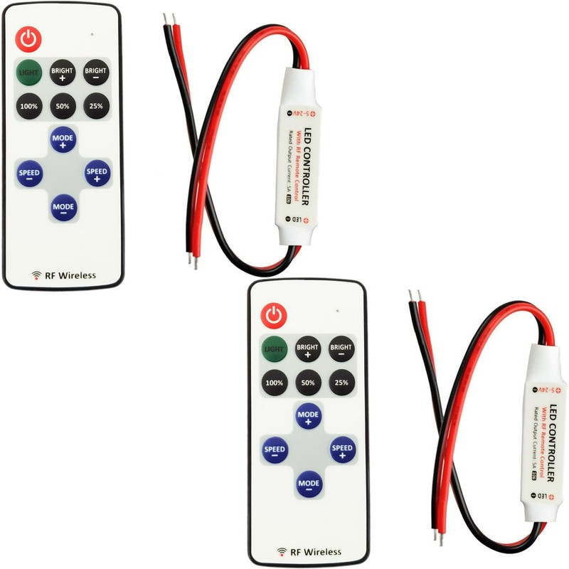 LITAELEK 2pcs LED Strip Controller LED Strip Dimmer Controller DC 5V-24V 5A Receiver RF Wireless Remote LED Strip Remote Control Controller for 2-Pin Monochrome COB LED Strip and SMD LED Strip