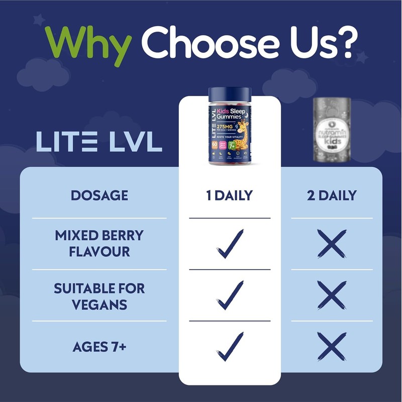 - Promote Restful Sleep Naturally: Our LITELVL Sleep Gummies, supporting your child's natural production of melatonin, promoting restful sleep without the need for melatonin tablets or strong sleeping tablets.