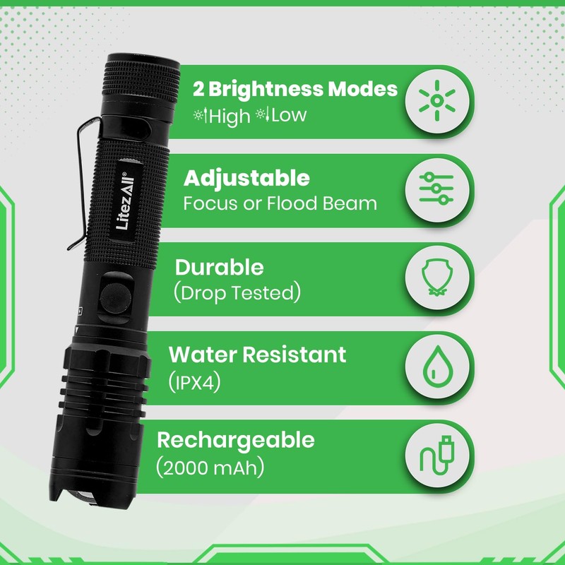 - Bright & Efficient Rechargeable Flashlight: This flashlight rechargeable model delivers up to 1000 lumens on high and 300 lumens on low—perfect for indoor, outdoor, or emergency use.