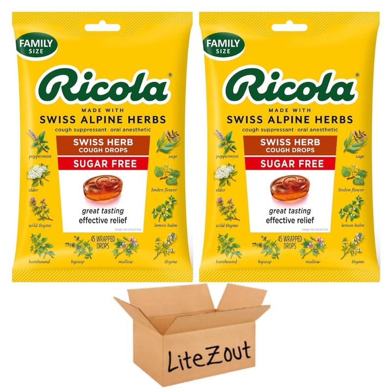 LiteZout Sugar Free Original Swiss Herb Cough Drops 45 ea.(2 Pack)