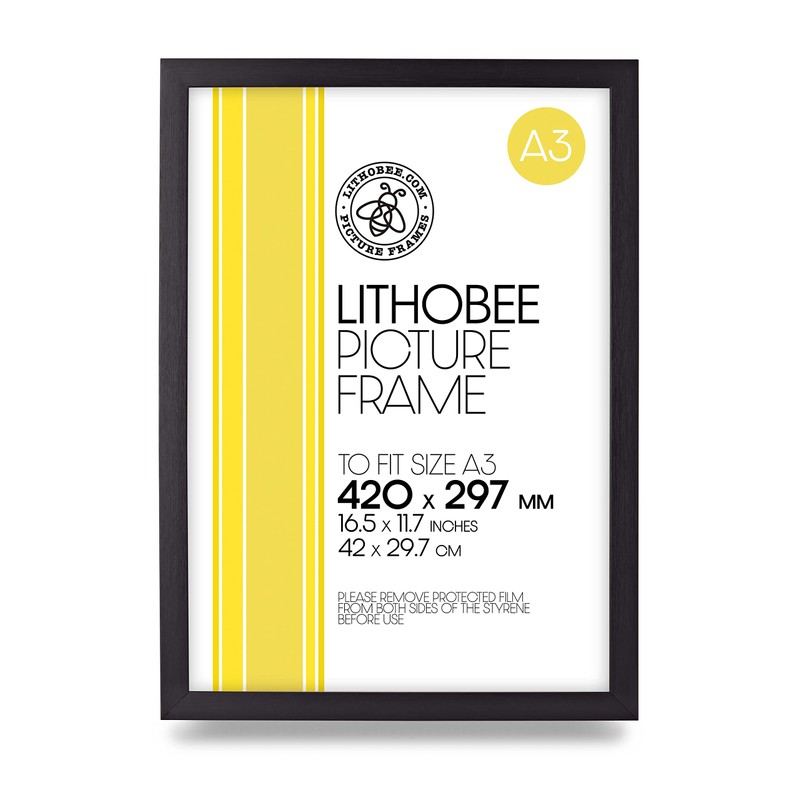 Lithobee - Black Brushed Stylish Quality Coloured Frame comes in Sizes A3 & A4 Ideal for Home Bedrooms Living Rooms Offices and Framing Photographs, Prints and Artwork