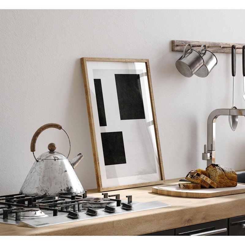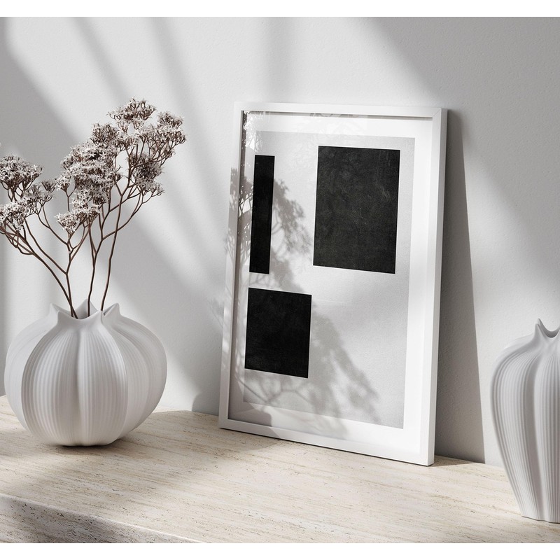 Lithobee - Black White Abstract 3 - Printed Wall Art Design in Sizes A2, A3 & A4 Framed in a Stylish Quality Coloured Frame or Unframed (A4 Black Grain Frame)