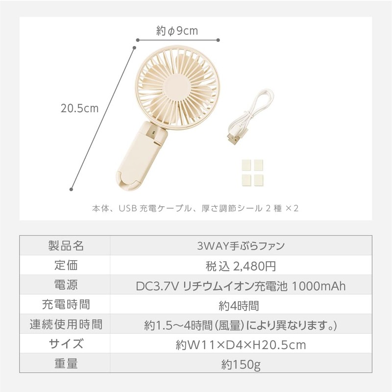 LITHON KSFN-020I 3-Way Empty Hand Fan, Parasol Fan, Portable Fan, Handheld Fan, Handheld Fan, Rechargeable USB Fan, Small, 3 Levels of Air Flow Adjustment, Handheld, Desktop Clip, Mini Fan, Small Fan,