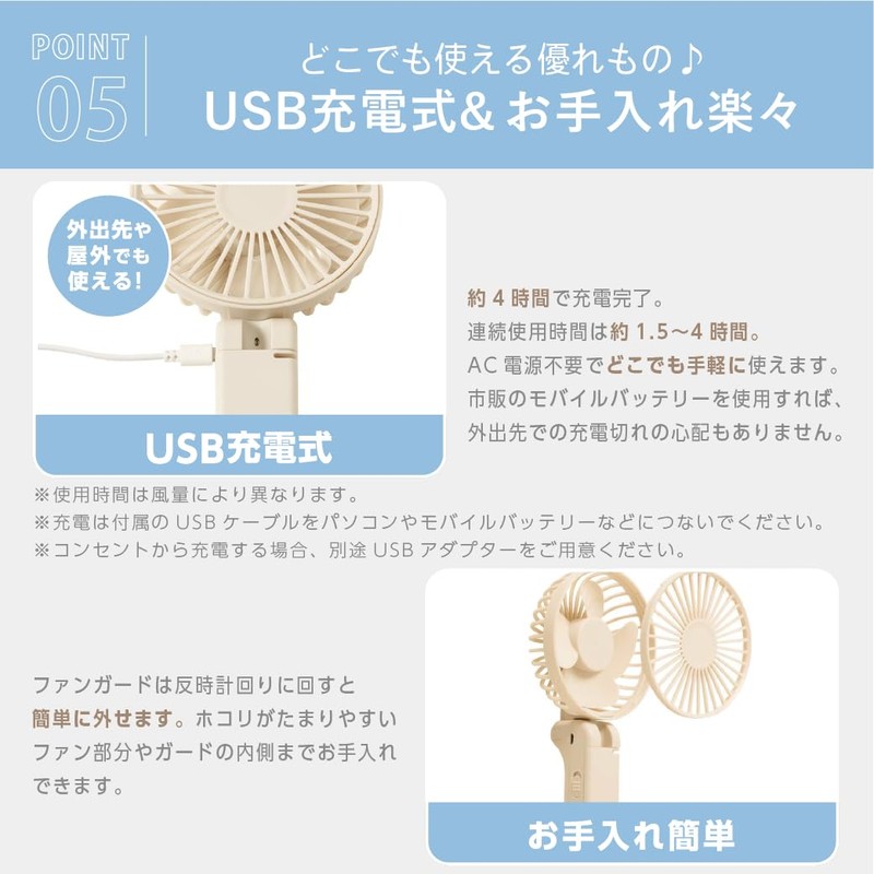 - ✅USB rechargeable. Charging takes about 4 hours. Continuous use time is about 1.5-4 hours. No AC power required, so you can use it anywhere. Use a commercially available power bank so you don't have to worry about running out of charge on the go. Usage time varies depending on the amount of air flow. Please do not connect the included USB cable to a computer or mobile battery. When charging from an outlet, please prepare a separate USB adapter