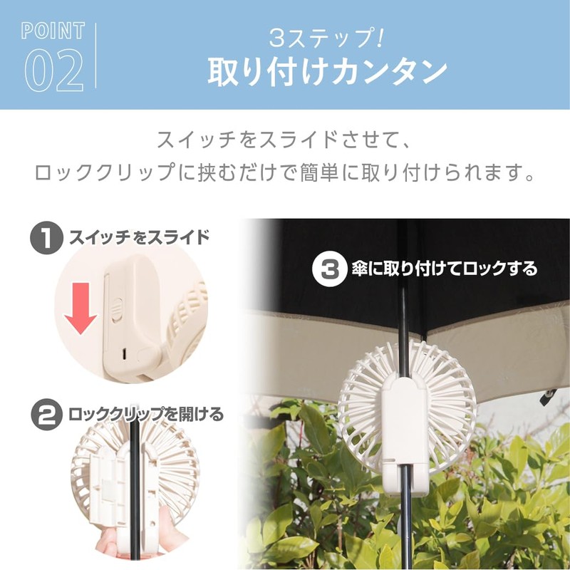 - Handy 3-way fan that can be attached to an umbrella. A convenient 3-way small fan that can be used as a clip fan, handy fan, or desk fan