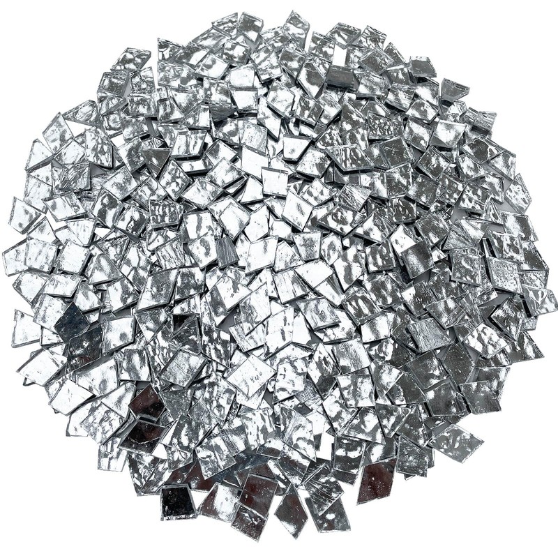 - Value Pack - 1.1lb/500g shiny silver irregular dazzling glitter glass mosaic tiles.