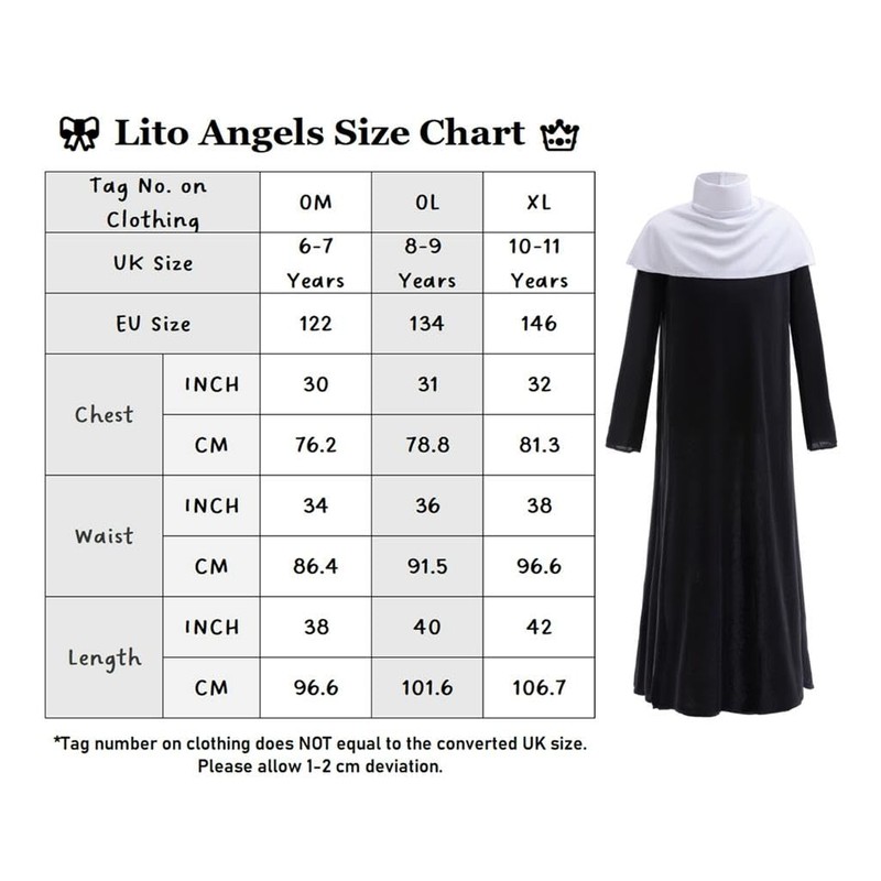 Lito Angels Kids Girls Nun Costume Fancy Dress Up Outfit Black Robe with Headpiece and Collar Age 10-11 Years