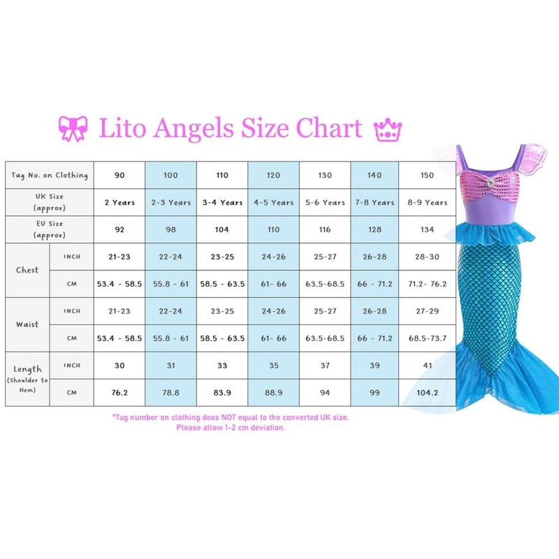 Lito Angels Prinzessin Meerjungfrau Arielle Kostüm Kleid Verkleidung für Kind...
