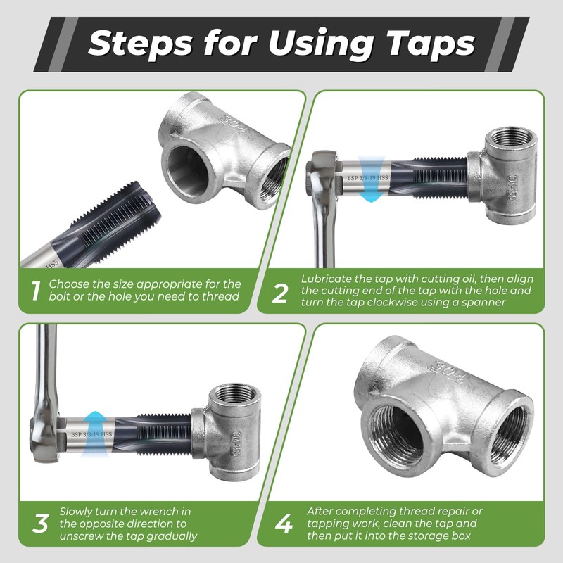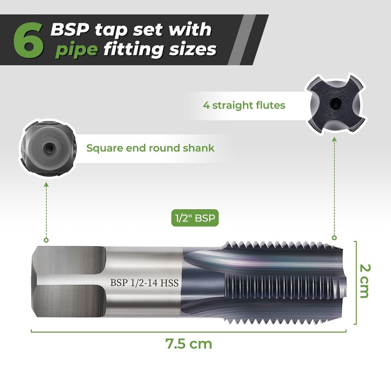 - Diverse Sizes, Wide Applications: This British Standard Pipe (BSP) tap is carefully equipped with 1/2 inch. With its rich size specifications, it can be widely applied to various pipeline threading scenarios. Having this set on hand means you can easily handle all relevant