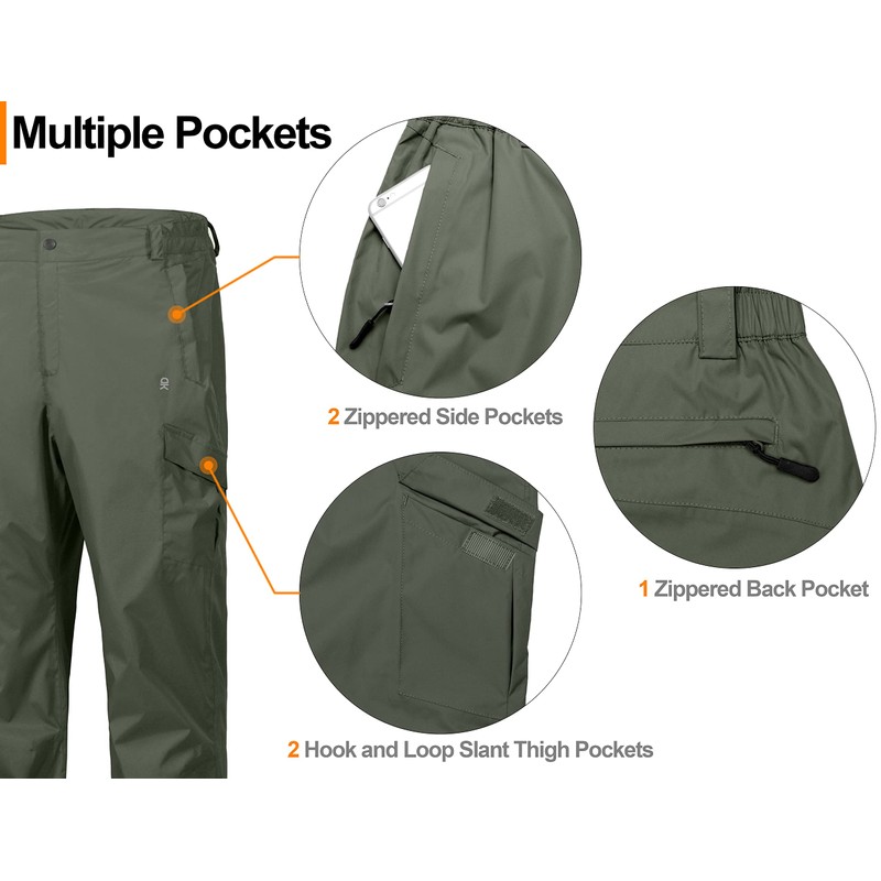 Little Donkey Andy Men's Lightweight Waterproof Rain Pants Breathable Hiking Pant for Outdoor Fishing Dark Green S